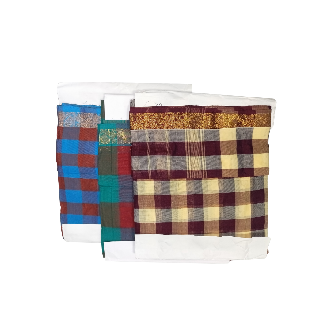 Enhance your style with the classic beauty of Aachi Checked Sarees – 9 Yards.