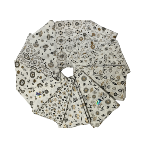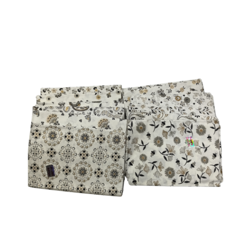 Base Colors/Patterns: White base with golden & black floral prints (multiple pattern variations available).