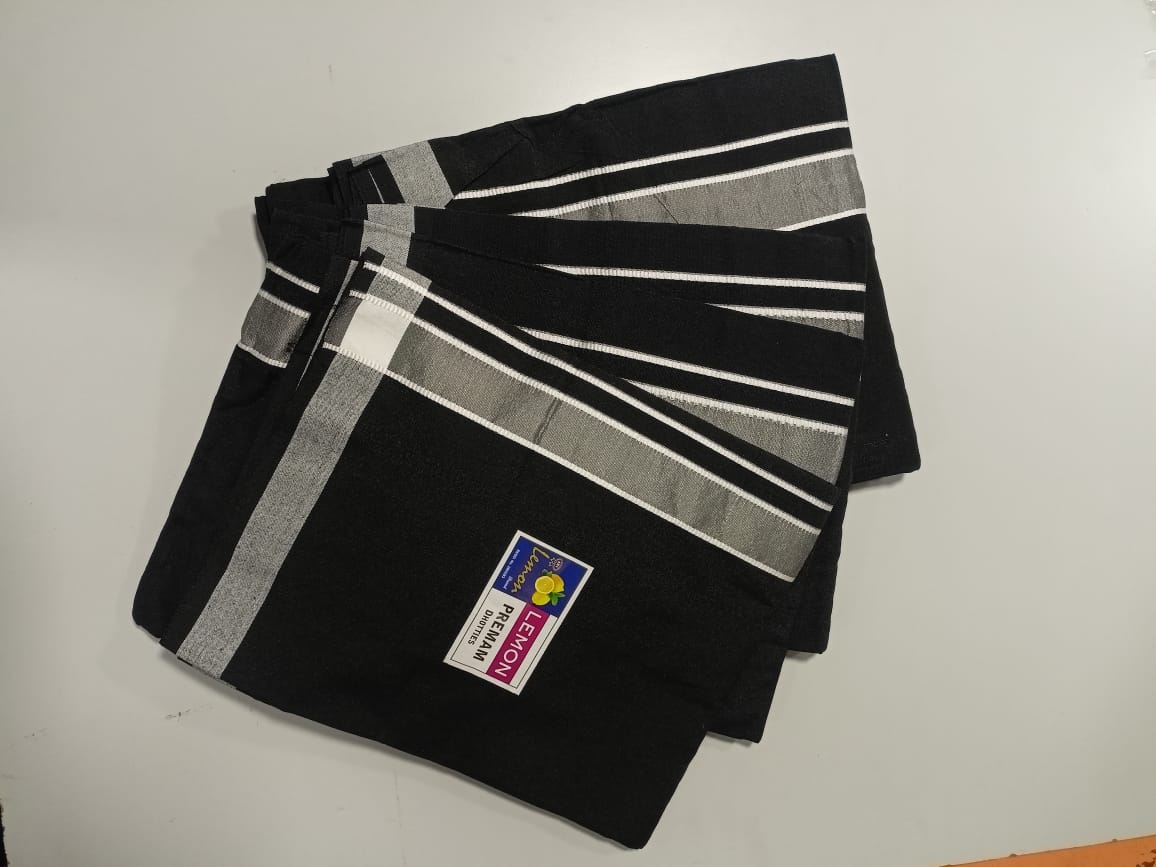- Versatile Traditional Wear – Classic men’s lungi/kavasu/mundu/dhoti/sarong in elegant black with a fancy border, suitable for daily wear, temple visits, and cultural occasions.