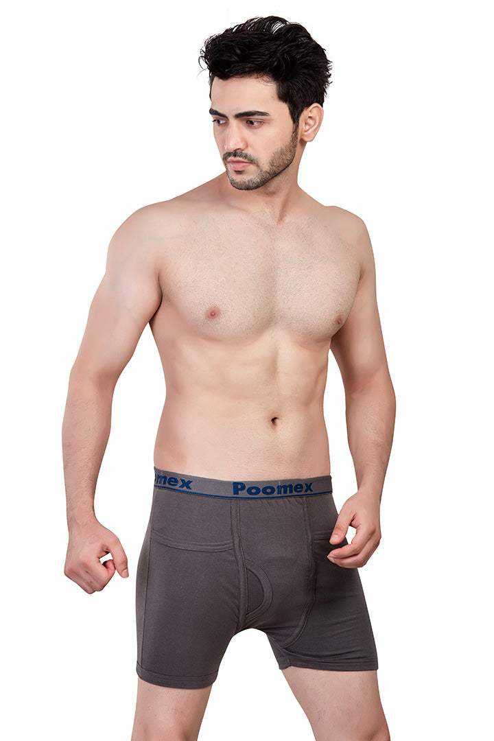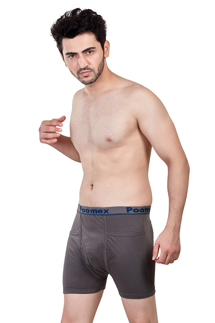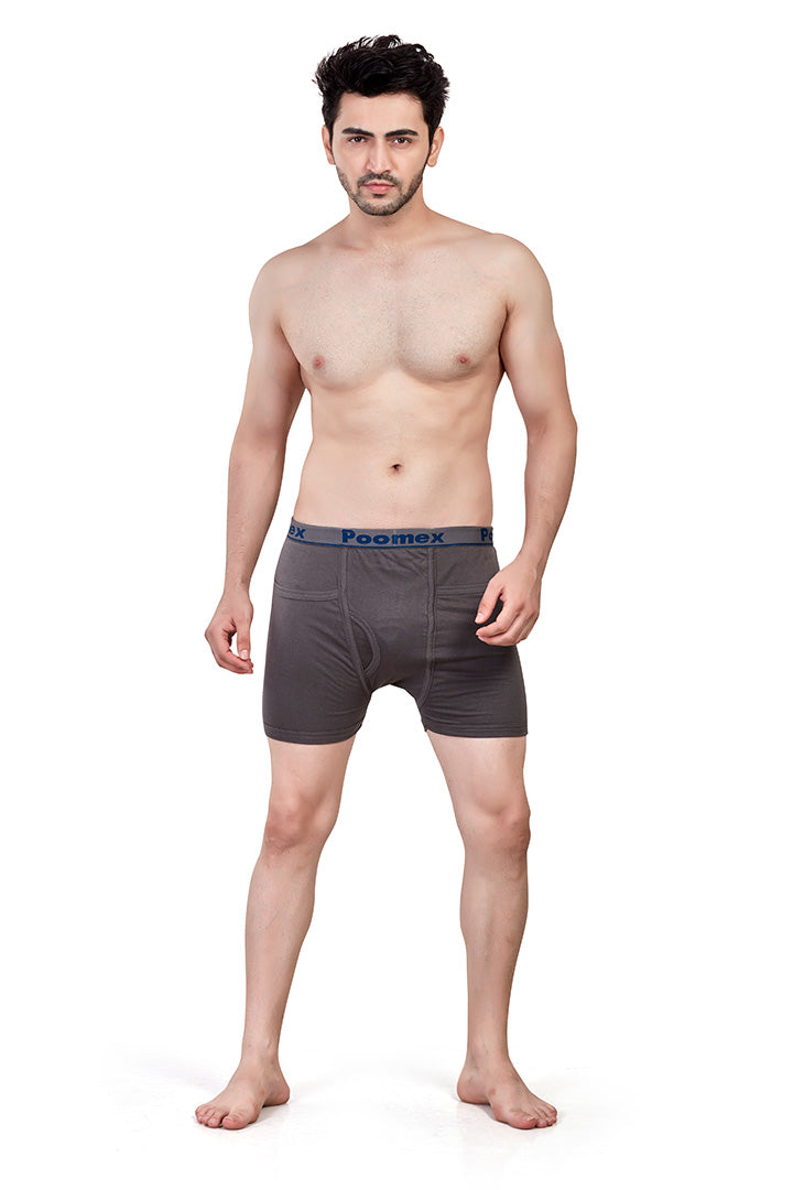 Indulge in luxury with our Ribbed Pocket Trunk. Made from 100% Combed Cotton, it offers ribbed fabric for comfort, a classic pattern with a pocket, double-layered pouch, engineered elastic, and label-free comfort.