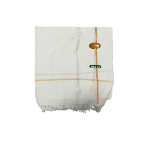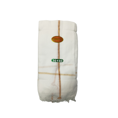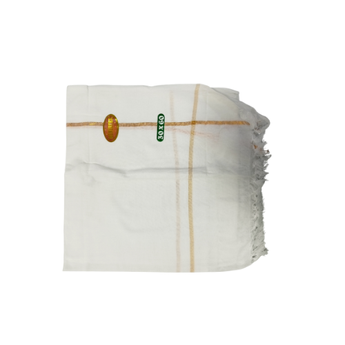 A devotional VIP Zari Thundu with small border, perfect for temple rituals and pooja ceremonies.